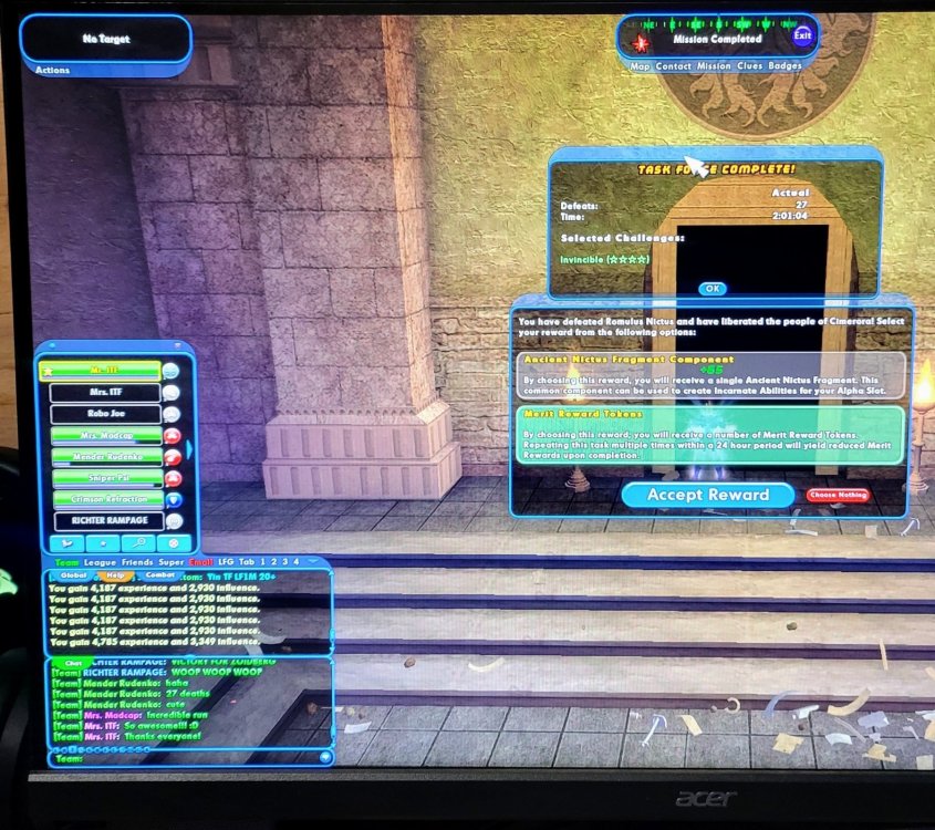 Lots of Damage and exp. ppl who needed just the minimal of guidance mostly to my playstyle and how I run my TF.
