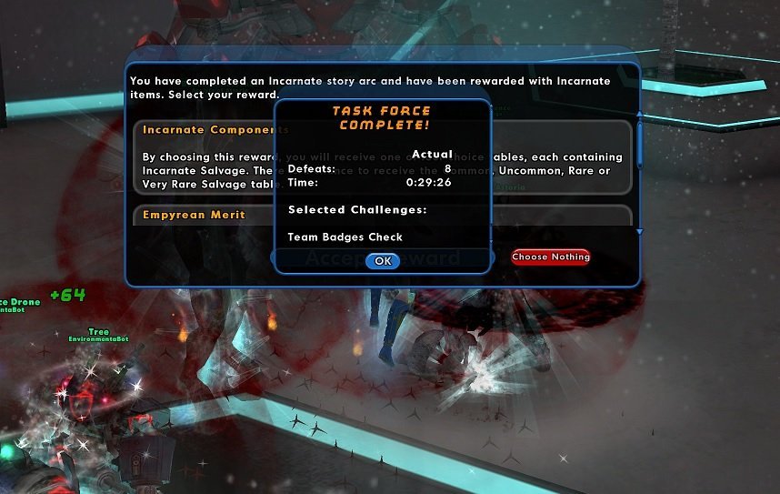 We did a full TinPex today, missing only the Midnight Dodger badge from both Master runs. We tried recruiting from LFG each time, but the lure of ToT was too strong. 🙂 Great costumes, and great work from all!