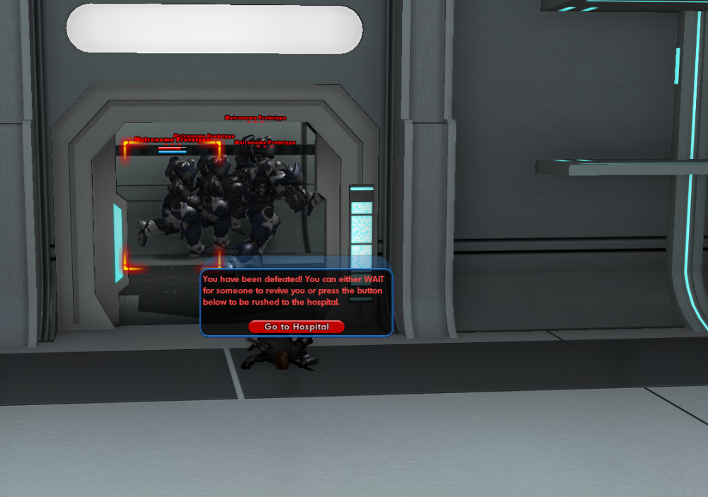 Few more pictures and some thoughts. First, this time was after the countdown finished, and when I came into the room, it appeared that all the Metronome prototypes were active. Since it looked like only some of them were on my last time in, I'm guessing that the actual progress here is a few activating at a time, and then the bulk activating when the timer reaches 0. Which probably means, since I was stealthing missions on my Stalker, that I simply arrived at the bosses too early for any to have activated, and killed them too quickly. Seems to be working as intended, just a misunderstanding on my end 🙂 Also, owwwwwwww. These guys hurt.