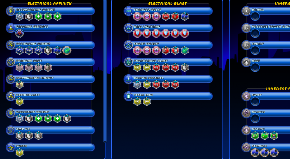 This is me at vet level 15. I solo on +1/+8 by flying in to packs of mobs, dropping faraday cage, summoning sparky if he is too far for bouncing, and aoe'ing away. I have a macro to bounce buffs on him in combat, but I am usually pre-buffed with amp up + insulating circuit, so once I have capped resists from the cage, I don't get hurt too badly. I haven't even used sets yet as you can see and it runs just fine without any trickery. One thing you'll notice is the performance shifter + multiple power transfer: chance to heal. With energizing circuit, you get 10% of your endurance + the full end recovery with one cast. The chance to heal triggers off each person it hits. So this is an enormous self-heal and end recovery move every 10 seconds. I am also incredibly attack-light for single target attacks. Usually, this is fine though, since I am busy casting buffs + aoe. I may swap in zapp or hasten someday instead of thunder strike though. I use agility and amp up and between those two powers, everything that isnt an AV is within shock/low end range within 2 hits. I might also swap the gaussian out into tactics - i had it there initially to see if i could get multiple applications per bounce like energizing circuit, but i couldnt. Galvanic sentinel doesn't proc the stun from what i've seen, sadly.