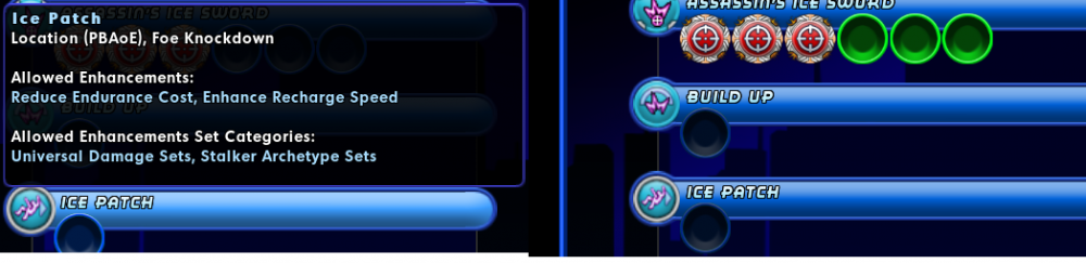 Stalker Ice Melee>Ice Patch says it allows Stalker ATOs but will not actually let them be slotted. Was going to be a great place to stick my Assassin's Mark chance for build up/recharge ATO 😞 I have not tested, but I bet Universal Damage Set also is a no go.