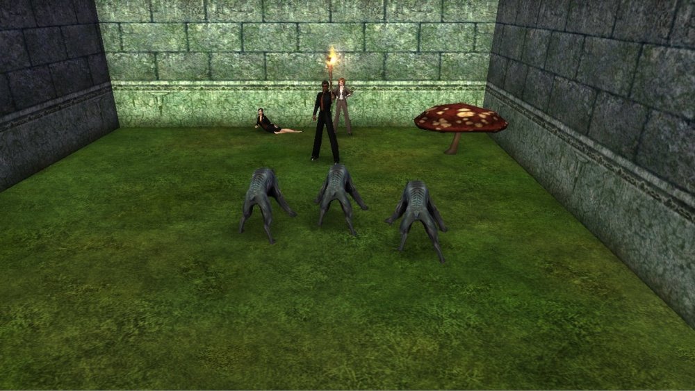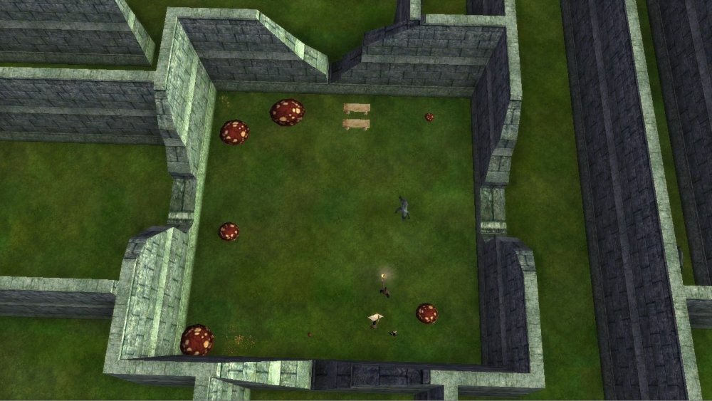 Heres some more screenshots. No I'm not showing you the labyrinth. 😉 The one with the 4 broken walls is the starting point of the Labyrinth. All broken walls are considered a path. Will it be the right path? Guess you will have to find out when its completed. Also made a Doctor Who reference. Labyrinth is just about finished. Should be enclosing it shortly. The man fishing and his partner(woman with scroll) are the ones who summoning the Minotaur and shadow demons. The mushroom portals are the portals to jump to another area or exit.