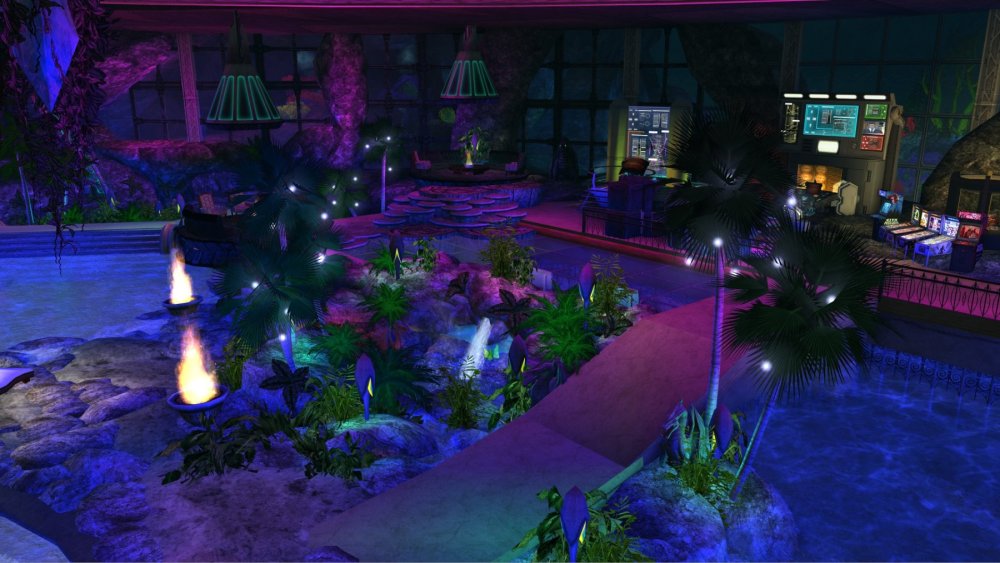 Description: The Oasis was a small place with a lovely pool, but after some recent developments, they have decided to go public as a Resort, just off the coast of Peregrine Island, reachable by boat. The Oasis has a clinic for the local residents to help them recover from stray Rikti attacks, while the rest of the island is dedicated to the Oasis Resort. There you will find lodging for the heroes who make it home, the Dulcet lounge if you need to get your dance or karaoke on. There is a gym, the Eye of the Tigris, complete with sauna. And, the star attraction, the pool, which has recently undergone massive enhancements (2 additional hot tubs, a healing pool using stolen oranbegan crystals, and more!). There is also a Barservatory (TM) that we call Ghast that overlooks the falls, and sits above the pool itself.