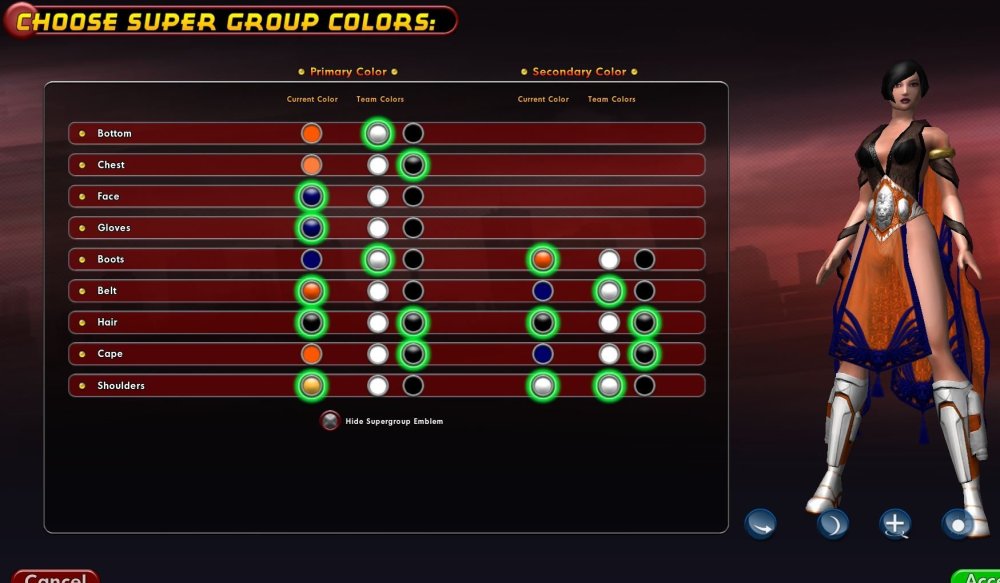 Request: Super Group Colors get an added field for cape interiors. Currently there's no way to change the Interior colors of a cape/Sybil costume part for your Super Group mode Team Color. (This would be useful for more than just the Sybil outfit, but at the least can the Interior colors be changed/slaved along with the 'Cape' field colors for uniformity?)