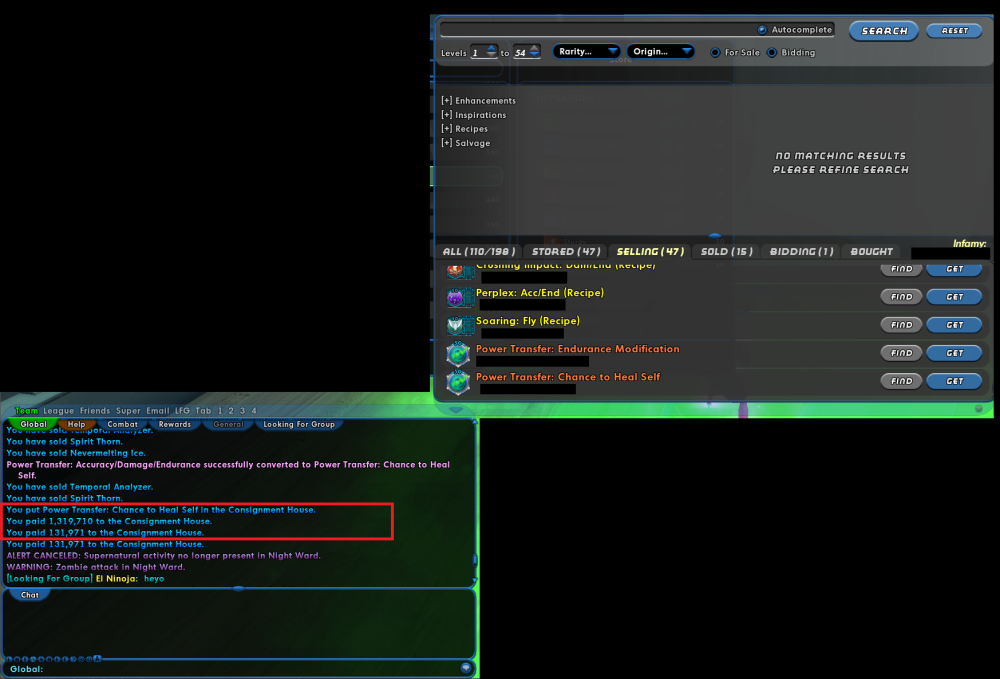 I went to post an item on the market, was charged 10x the *LISTING* fee AND the item did not post. It is quasi-frequent that I am charged the appropriate listing fee and the item doesn't post, this is exceptionally annoying being charged 10x the fee and also getting kicked in the groin by this system. This is also the first time that I've noticed being charged 10x the listing fee, but I'm sure it has happened before cause you know this game. I did not buy the thing, I didn't have the wrong amount, I did all the correct things for trying to SELL a new item on the market. (I'm only saying this because the first knee jerk response of the jerks is that the user clearly must be ignorant and wrong and and and...) Devs... for the love of love... please try to fix the damn market and this issue that surely impacts many more people than just me and must be irritating for many others... this is QoL and a bug all rolled into one, who wants to push the button to post to the market, get charged for it, but not have the item listed and still sitting there... can I go to the store and pay for services and then not receive them? Where is the Better Business Bureau of CoH? You know... pics or it didn't happen and you're the crazy one... look I screen shot the thing, but how does one even prove a sequence of events like this with a mere screenie? Did you think about that at all before you thought about the need for a pic?