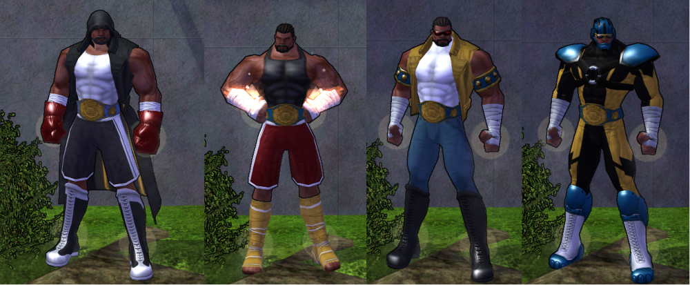 Evander Jawbreaker has gotten a few more costumes (from left to right) 1.- Street Champ 2.- Gym training 3.- Vigilante 4.- Hero costume