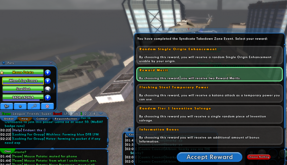 I wouldn't sink my total worth in them, no. But, I need to stay somewhat liquid to get my bids in and handle the usual marketing stuff. If you're someone who's able to WAIT until maybe next August, September, for folks to start working their way through their inventory, then yes, I think you can recoup your investment. The only time I've seen the RNG treat me so shamelessly is while converting...maybe 2 times out of 1000 IOs. Like, a really, really low fraction of the time. I was sure the devs broke it, or deliberately altered it in some way. And why? Because of this not-so-subtle push towards teaming. With a player having 1000's of merits from the packs...then why team? Players don't need to team to get those merits any more. Now, if they nerf the amount of merits, players may still solo to get them, but at least some of those people will team more often to get them.