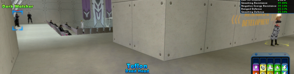 So, allow me to try and shed some light here. Levantera is the first contact anyone gets in RWZ, regardless of alignment. She's a level 35-50 contact. Her first mission is to have you speak with Borea, and then Borea would have you kill 10 Rikti (I almost always go after the monkeys because I can one shot them most of the time) and then you return to Borea, who introduces the player to Serpent Drummer Gaussian Dark Watcher Lady Grey. So, if you had actually started any content in RWZ, you should know where Dark Watcher is. If you ever use the LFG, you can select Infernia's Story arc, and be teleported to her. I say to do this because, other than using a /loc - which might require an explanation of how to use a thumbtack (Dark Watcher is at 287.0 -56.0 -2123.3, by the way) I think this is the easiest way to describe how to find him. Fun fact: No sewers in RWZ. There are underground tunnels, but no sewers. The figure with the flaming head next to Teflon, (my alt), is Infernia. Simply shuffle to the left (facing Infernia) and Dark Watcher is straight ahead. As shown below: So now you know where Dark Watcher is. RWZ has some good content. I like DW's content. Good stuff. But some of his missions, if you've not done them before may leave you frustrated with a lack of direction. Especially when you get to the one that requires you to "Find mission exit". If you simply thumbtack your location upon entry when you get to the mission that looks like you're in the shadow shard, that might be something useful to do.