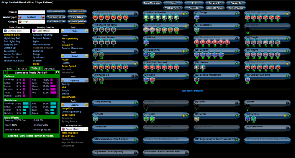 Take a look at this, please, and tell me what you think. [Lady Wormwood].mbd I'm going against the grain a little bit by not taking Hasten or Fly Trap. My global +Rech without Hasten is 117.5% which should be more than enough to keep Perma-Dom, with the Ageless Incarnate essentially serving as a stand-in for Hasten and keeping my Endurance up rather than draining it. I plan to run with Hover & Evasive Maneuvers most of the time, so I figure 38% range defense will hold me in good stead. This is definitely going to be my most expensive build yet, but hey - it's only influence. Note: I updated this build and this post on 4/16.