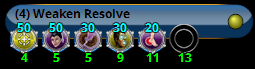22. Just open Mids, ya big lazypants 😛 Bonus Points: and with Arcane Power: The clincher is that you need a LOT of global recharge for Weaken to be a viable addition to your attack chain. And Arcane Bolt and Project Will both benefit from Containment/Crits/Scourge/etc; whereas Weaken does not. (IMO Weaken Resolve is more useful for its -res debuff capability... especially with an Achilles Heel in it... than for its raw damage potential...) Also Project Will and/or Arcane Bolt is quite often better slotted like this instead: