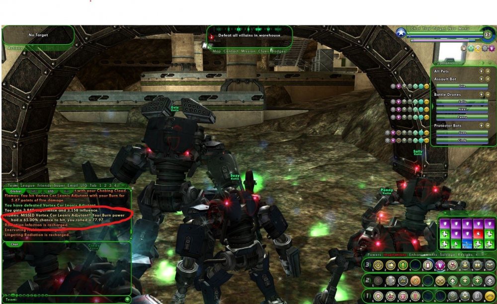 1. As topic says, the assault bot's incendiary missiles don't seem to be registering accuracy enhancements into their accuracy calculations. Enemies fought were +1 Council (my level being 37). No vampyrs to lower accuracy, enemies were not buffed with defensive powers.