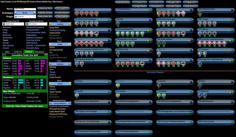 I want to ask, because I have played this to 30. Is your advice motivated at all, by actually playing a build origin to completion, without any assistance from your other toons? Or as a respec fully funded, with nice crispy full sets of level up with you enhancements? The reason I ask is this has played, letter perfect to the build planner, like a dream. The two toggles you suggest would cause massive endo issues, and keep in mind I've had level matching IO's in the entire time. At low levels, when you can (supposedly should) take those, the mobs die so fast it's a waste to even apply them. Most times when you're picking your target it gets burned down. Tried that, moved on, take 'em later and feel fine. Again, PLAYED, not a 2D Mids builder, theorycrafted build. You say HO are pointless for boxing/assault, they wont be used. But boxing has been used, at low levels, where I'm playing, not farming, or PLing. I'm soloing arch missions or doing TF's appropriate to my level. As far as neutrino and xray poor returns, again, they have been amazing. My experience and your notion do not align. Since I've grouped I have been one of, if not THE, strongest heroes, in each of them. My experience informs my choices and I'm finding the advice I get must be taken with a grain of salt. Builds, in a vacuum, to ooo and ahh at numbers is not what I'm after. If a new ( or returning player - like me ) took this build, with DO's or SO's I bet they find it a great experience. I've looked at a lot of defender mids builds, my defenses, recharge, DPS, and regen are right there with most of them. I do appreciate the Incarnate advice, I'm not there yet. The walls of text in the Mids planner make my eyes gloss over so I just pick one based on a quick glance and move on. I'll figure that out in a month or so. I hope. -