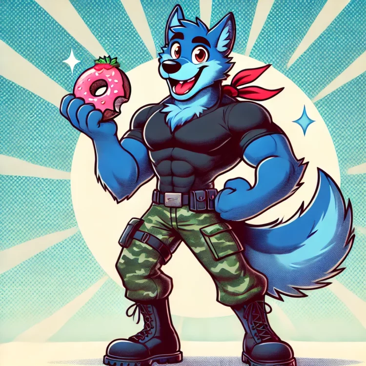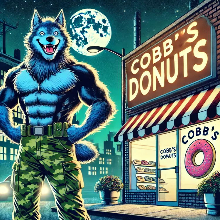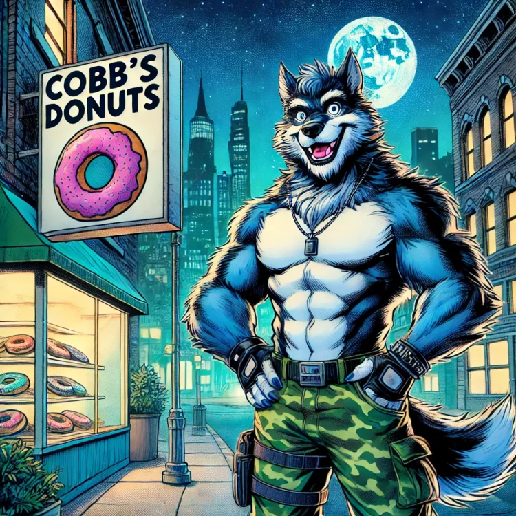 I've been live streaming CoH for two weeks now and it's been a great way to meet players! I build AI art for the channel daily, to keep the look of the channel fresh and to promote the characters and RP within each broadcast. If you wanna join the party, come join us, we are a casual easy group to hang out with. We are the kind of easy going channel that talks about how to make good homemade hummus, or last night we began to discuss our favorite muppet movies and characters! This art features "Cobalt Wolf", a lovable, fluffy blue werewolf who owns a donut store and has a friendly Arachnos Spiderling, (named Lana), for a pet. Join us: https://www.twitch.tv/veedasher Thank you all for letting me share this with you.