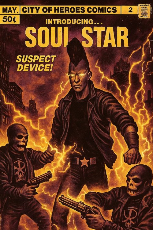 Soul Star - Issue 4 Killed by Death! Synopsis: In this issue: Sol is being hunted by the Marcone family, on a "kill order" that has all of Independence Port hunting for him. REVIEWS: Issue 4 of Soul Star tries a little too hard to pay homage to the author's love of Marv Wolfman and Motorhead. Great influences, just not sure they should be mixed together. -@IndieCoutureComics So I'm supposed to believe a kid has so much neutronium in his body, a vial of his blood is worth 1,000,000 influence? And he's hunted like a rat every day because of this? Ok, I'm in. -@GuyLovesComics I read it when I went to the bathroom on a Tuesday morning. Kinda glad I did. 3-stars. -@MangetoutComics ((OOC: I earned the "Gangbusters" badge! 🙂 )) -------------------- KILLED BY DEATH: Independence Port is long past its prime. Riddled with black markets, Freakshow goons and the territorial Tsoo, the foghorns here echo across hollow urban sprawl. The tale of ghosts and dirty sailors mingling with the salty air of a rusty pier. Each street corner is marked, owned and requires a toll. Longbow helicopters fly far away to solve the latest crisis, while getting to work without paying at least two extortion fees per city block is impossible. You don't come here lest you got business or worse, are forced to work an d live here. Hospital workers some of them, allies of Yin and her constant need for heroes. Or the array of monster hunters here to bag another giant squid that grace us with their presence at every blood moon. But I'm not here for glory, or the spotlight or another task force. I'm here because I got beef. Like I said, you don't come here lest you got business. My business is with the Family. Actually, more accurately, their business is with me... -------------------- ((OOC: I'll be trolling Talos Island now from level 22 to like 27. I think the Freakshow will be prominent in the next issue, as Soul attempts to make a renegade wing of this gang into allies. Please if you see @DoctorNorth and want to RP a little, say hi. Each issue will try to pay "homage" to a classic City of Heroes mob.))