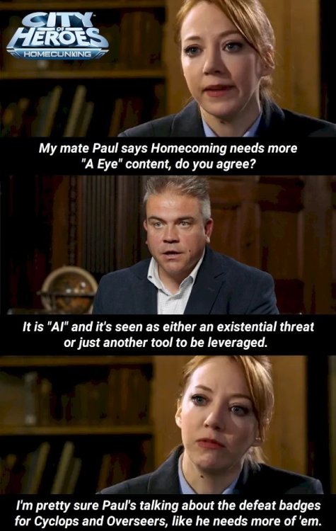TBH, on Tankers I would often try to lean into the Leadership pool (and similar ally-benefiting Destiny, Hybrids) specifically to buff teammates, especially those that have to stand within melee range of the enemies I'd be tanking. Even though @Maelwys and I landed on different sides of the buff/debuff idea... I think we have some evidence that the devs (and certainly some players) are hyper-focused on damage differential at an extreme edge of performance (where several ATs are already narrowly clustered around some impressive times). I wouldn't recommend a change to Brutes based on what @Maelwys or I have proposed, only because the reaction would be "you ruined my favorite character"... and I think this reaction would be less histrionic *1 (if Brutes became buffer/debuffers) than the claims that Brutes are ruined because Scrappers/Tankers outperform them by 1% per "Ston tests". (*1) A radical change like we propose would almost certainly require respecs across the board, and if the Fury was granting a enemy debuff (or ally buff) it is hard to imagine Brutes staying within 1% of other melee AT, per whatever measure.