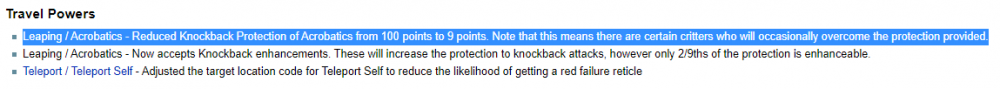 See, I wouldn't mind that approach either, just adjusting the other armor sets so there is some resemblance of balance. Or, even adding in what @EverStryke mentioned earlier about changing Acrobatics to include Knockback Resistance and then any AT can add it into their build. This way it would require sacrificing a power slot to gain the advantage if it was important to your build. I wouldn't make it as strong as the Tank version but make it worth taking and slotting for at least. I have only tested using Recluse so far, but I am sure there are other AV's or mobs that can hit just as hard and have KB as well. It's just one of those things that bugged me so I started looking at it more. 😃- 105 replies