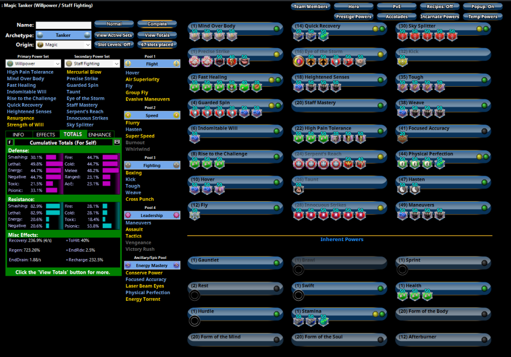 3. Mkay so I toyed around with mids for a bit, and cobbled together something of a build... Any suggestions on how it might potentially be improved? I'm still not entirely sure of what I'm doing, since this is my first time using Mids, and my first time using IOs in general, so any advice would be greatly appreciated. Tanker (Willpower - Staff Fighting).mbd