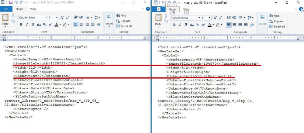 Hi, I was able to modify one of the maps from the OPTIMAL BADGING PATHS map pack to display correctly at all quality settings by editing the DDS image as well as the text portion of the .texture file 1) I took the Warburg map (map_V_PvP_04_01.texture) from @AboveTheAlchemist 's optimized badge path pack and confirmed that it had the same behavior (displays correctly on my computer at "high" or "very high" World Texture Quality, but displays incorrectly at "medium", "low" or "very low" world texture quality) 2) I used the detexturizer tool from this page: http://www.cityofplayers.com/pks-tools/ which I found via this thread: https://forums.homecomingservers.com/topic/9304-quality-of-life-texture-mods-and-other-things/page/4/ I used that tool to convert the .texture file to a .dds file and a .xml file. 3) I opened the Warburg DDS file in GIMP and re-exported it with the following settings: 4) I compared the .xml file to two other .xml files from textures that worked 100% correctly for me, and I noticed two (or three) numerical values that were identical in the two working files but different in the Warburg map file. I copied the following numerical values to the warburg xml file and resaved it (original warburg file is on the left, "100% working xml file" is on the right. 5) Then I used the detexturizer tool again to recombine the xml and dds files to a .texture file and copied the file back to its correct CoH folder. The updated file works at all World Texture Quality settings (EDIT- unfortunately, not working 100% correctly. My edited map changes resolution when the world texture quality setting is changed, but it SHOULD remain at full resolution, so more testing is needed). notes: a) Probably there is a simpler way to make the changes if you have programs that export directly to a .texture file. b) Possibly only one of the two edits I made to the XML file were necessary, I have not tested them separately. c) Updating only one of the two files (DDS or XML) did not not result in a working .texture file (assuming I kept track of my testing properly) d) The file size of the original .texture file was 769kb and the new .texture file is 1025kb (possibly due to the inclusion of mipmap data) Hope that helps! -