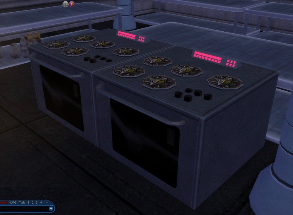 You can hack gas stoves (no fire) and burners, and refrigerators. I recall someone had a microwave oven, too. Not the best ones out there, but might give you some ideas. One trick I use is to float up a platform that matches or is slightly above the table height, then use that for F5 surface -- then delete it afterwards