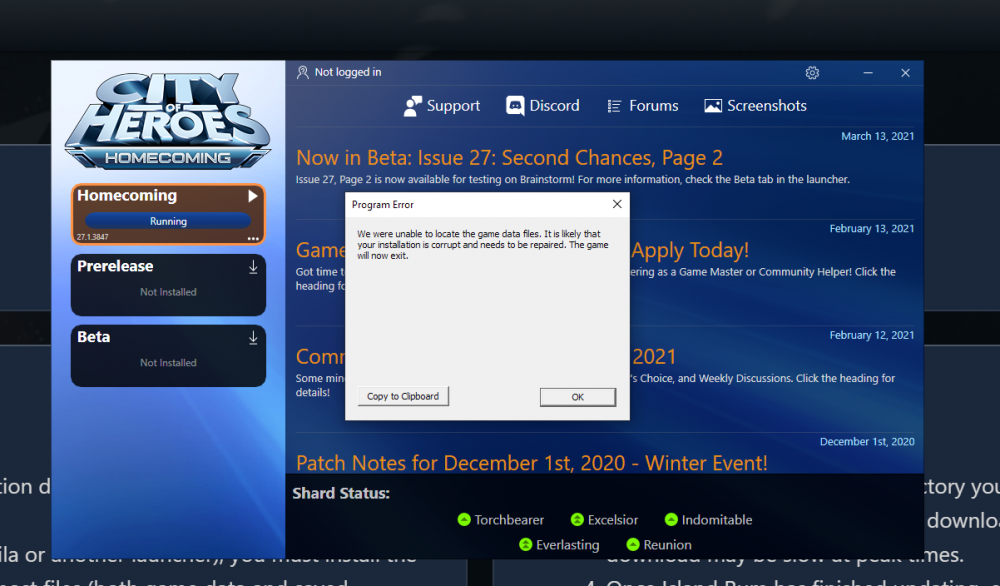 hey all so I played yesterday and today the window doesn't open when I launch the game. I get this error now. I have not moved the files i was using tequila and i did validate the files just fine. I installed the homecoming launcher thinking it might have been tequila but i get the same message.