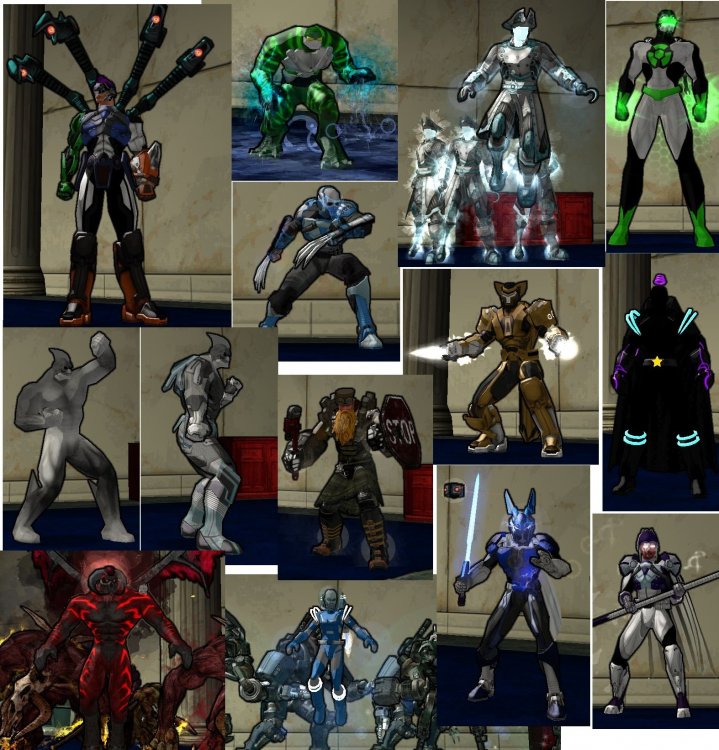 These are my costumes I like the best so far that I've done. T3CHN01D - Crab Spider : Bio he scavenges old battle sites to find upgrades to his armor, that's why nothing matches Frenzied Frog - I messed around in character creator and came up with a frog - powers don't match tried to make bio armor look like water though Erwaz - Gotta have a ghost pirate with a ghost pirate army - ill/rad controller Arco Avenger - NRG/Rad corruptor - I will probably reroll to rad/rad or something not happy with NRG - but Arco was the first town in the US, maybe world to be powered by nuclear energy. So made a tribute character with energy/rad. Tier Dal - Claws / Ninja scrapper - just messing around in creator liked what I came up with Tier Dal is the name of a blue skinned elf race in EQ, and he has blue skin so. /shrug Caracal - Claws / Energy scrapper - Now this one was funny.. my first character on the server and first to get to 50.. I knew I wanted to start with a claws scrapper so I thought "ok NOT going to make a wolverine clone, in fact I'll go tech instead of mute, and I'll give it a set of armor. Messed around came up with The Caracal - got into game.. "hey man nice blackpanther character!" ... dammit , ended up copying marvel anyways. Void Wave - wanted a reason to use blackout spectrum kin/son defender - don't like the way it plays going to keep costume and reroll not sure to what. White Shark - Savage / WP brute has two costumes a more classic tights look and a slightly armored look. Steampunk Viking - This dude has gone through every weaponset and many armor sets, as well as being a tank, brute, scrapper, and stalker. Right now its mace/shield scrapper, but it'll probably get rerolled again, same costume will be used just swap out powers. Greldek - Broadsword / elec stalker - Just wanted a BS stalker so made it and tried it out. pretty fun. Krazix Mal - Dark Armor / Staff tanker - love the character costume was just something I came up with in creator after trying to figure out how to make a cool looking DA/Staff tanker. Knew I didn't want to go all black, like Void Wave, wanted to mix it up. Wish we could have more options for DarkX power sets, they all stay pretty dark all the time. Kitten and the Horde - A joke character once I saw you could put kitten on male models. A kitten happened to wander into a Circle of Thorns summoning ceremony and now has a legion of demons under its control. Can often be found on rooftops pushing hellions off the ledge. Fehru - Bots/Rad MM - I wanted a small space man - story is rikti destroyed his world and he got away and sought refuge in paragon city. Uses his battle bots to try and help earth defend against rikti.