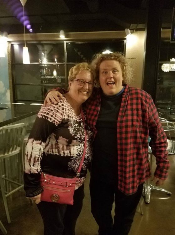 I'm a die-hard stand up comedy aficionado. Please don't ask me who my "favorite" is because that's too difficult. I can answer questions like "Who's your favorite clean comedian?" (Brian Regan) or "Who's the best nerdy comedian?" (Jackie Kashian) but if you get to broad, there are too many. There is a HUGE range that I enjoy. I prefer small clubs to giant venues. I try to get to at least one show per month, but don't always make it. I had one exhausting weekend which was Alonzo Bodden on Thursday, Jim Jeffries on Friday, and Patton Oswalt on Saturday. When I am able I take photos in clubs. Here are a couple of my favorites. Me & Christopher Titus; me and the comedian I have a CoH character named after. Her name is Fortune Feimster (she's the one with curly hair) so I have a widow named Fortunata Feimster. -