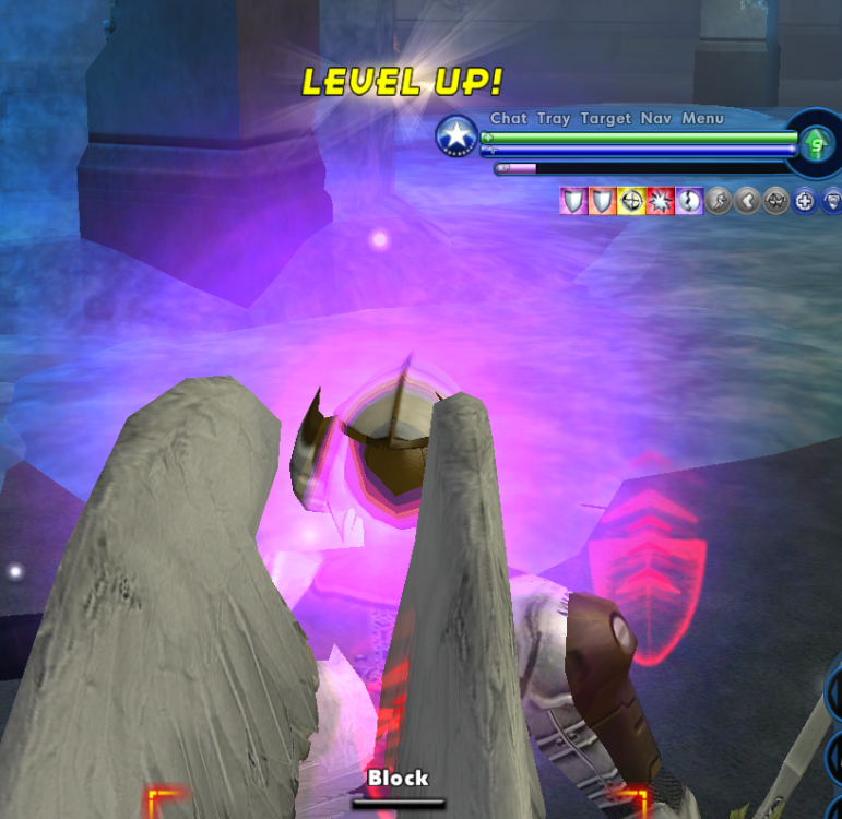 Newest member Arkangel (bio still to write), taking on a decided chilly arc today: Me chill out? How about you c-...never mind... Disneyland! Come to me! Okay, I'll come to you! Wait a minute, you-...oh, for CHRISSAKES! HOLD STILL! Hamstring? Don't mind if I do! Someone should "block of ice" that idiot in the background. Okay the real "key" to this is timing: Just need a few more willing sacrifices, er, I mean "arrests" for the BBBB (big buffs before boss). So, if you walk in, erm, "uncarefully," you slide right into...well, THIS. So, back we go: (Indiana Jones theme plays...but very quietly, 'cause...I got my ass kicked). Just to be safe: Bit of street sweeping to inch the bar a bit closer to lvling. I see my antithesis is lurking back there. Thaaaat's the ticket... You can guess how THIS went:
