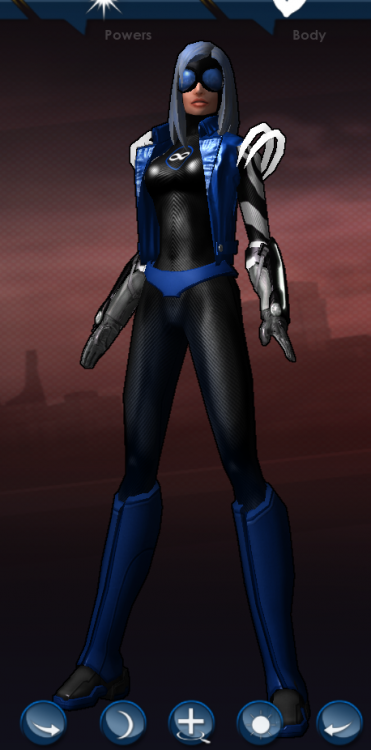 Thank you! I went back and forth for a long time on a lot if different parts of the look. It's hard to show off that she's composed of energy without also having her run around nude. I'm still not 100% sure about the shoulder pieces. As for a telepathic link, I think we're safe as long as we don't start finishing each others'...