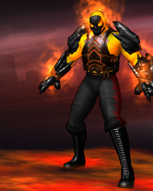 Honestly, it's a really solid design already, if maybe a little dated. To me it feels like something that doesn't need an overhaul so much as just a few updates. I tried to move it from looking like the Atom to looking like Solar, Man of the Atom. Don't know if I accomplished that exactly -- a lot of things I tried reminded me more of the 1970s version of (Marvel's) Captain Marvel. I darkened up the blue to make the red and yellow stand out more. The larger, more "blank" faceplate to help sell the "dispassionate" descriptor. Similar-but-not-the-same gloves because these match the faceplate a little better in my opinion, and the glowy bits, while gimmicky, imply that there's a lot of heat built up inside. Like the glowing coils in a toaster. I would have liked to do something with his shoulders, but it just didn't work with the Claws chest pattern and I 'm a fan of the way that suggests flames without literally depicting them. That "not-fire fire" look led me to add the blends in the lower body to improve on that illusion, and the overall flow from his feet to the "flames" at the top meant a belt would just break it up, so no belt. The outline on that particular chest detail is strange and doesn't play well with certain patterns and/or color schemes. This was one of them, so I just used a lighter shade of yellow to highlight it instead of a contrasting outline. Hope it helps! inferno.costume
