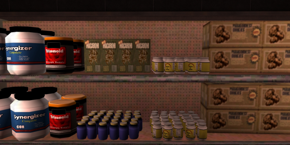 As you can see, the shelves and items on the right are low res, but the items on the left are high res. What's going on here?