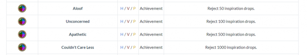 There are four, actually. The details are in the attached screenshot. There are also a number of currently disabled badges for rejecting specific inspiration types, which only show up via the settitle command, but who knows if those badges will ever actually become active.