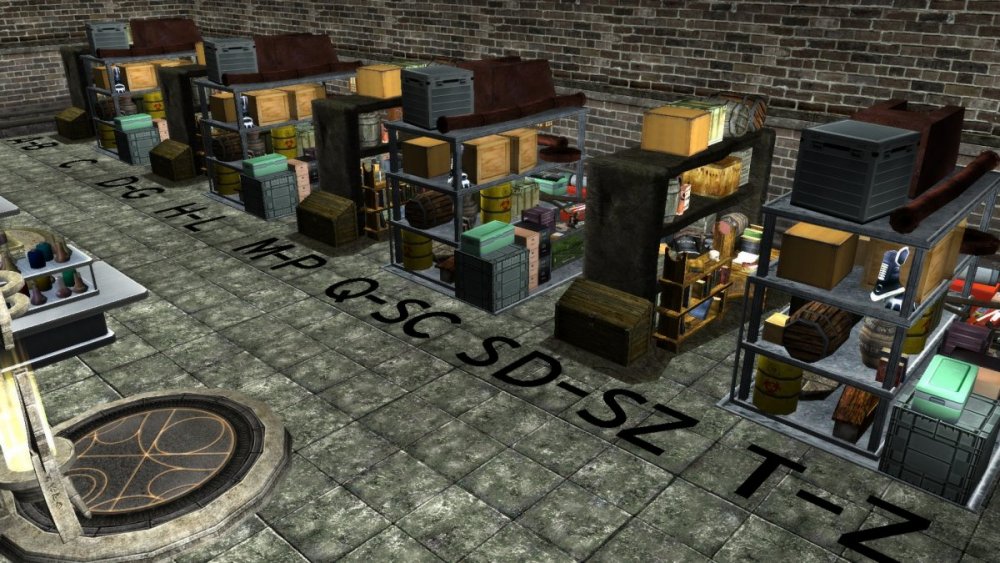 I keep 8 racks for common and uncommon salvage, organized alphabetically as shown in the screenshot. I don't keep enough rare salvage on hand to warrant storing it in a rack, and I just keep what little I have in my crafting character's personal vault. I have a couple of overflow racks (not shown) temporarily because I am working on the invention badges and have been hoarding more salvage than normal for that, but once I finish those badges I plan to sell off my excess salvage and trim back down to 8 racks.