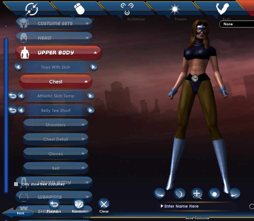 3. Hi there! There are two costume parts named "Athletic" and "Athletic Skin Temp" that can be loaded in Icon when you use the -n option for developer mode. These parts can be found for both Chest and Bottom costume locations. Is it possible to unlock these, already available dev parts (like how the fashion tight boots were) for Homecoming live servers? These options map to the "tights" and "skin' options already. It'd be nice if they would be applied to "tights sleek' also but I'd just settle for just unlocking the parts. Thanks in advance! - DP
