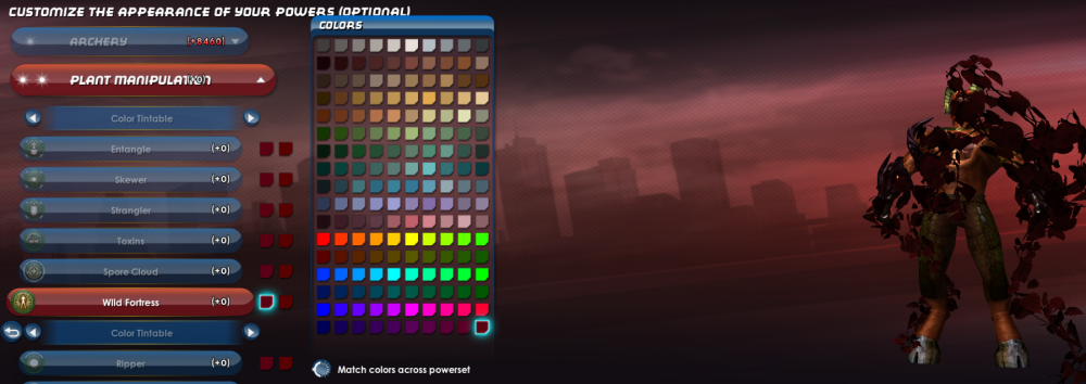 Backstory About 2 years ago I was extremely excited to play a goat-man Archery Blaster with Plant Manipulation as my secondary. I deeply desired to have the vines wrapped around my character. When I finally obtained the magical level I could use this Power, the vines did not persist! I shelved that character for nearly 2 years. Today, I ran across an Enchanter that had this beautiful vine sash - and it was persisting. How did he do it? Sorcery!? (Finding anyone using /Plant Manipulation is an extremely rare sighting in these parts) None the less, we did some troubleshooting. We thought, maybe it was because I am ugly? Was it the hooves? Maybe it was an costume aura? Was it the ninja stance???? We discovered, it was because I colored the vines instead of using the original setting. Bug Plant Manipulation: Wild Fortress, this toggle only shows persisting vines if you are using the 'Original' setting. If you switch to using a custom color, the vines will only show upon initial cast. Then it will fade. Evidence Power: Plant Manipulation: Wild Fortress (Toggled On) Setting: Original Status: Groovy Plant Manipulation: Wild Fortress (Toggled On) Setting: Color Tintable (Red & Red) Status: Bug! +