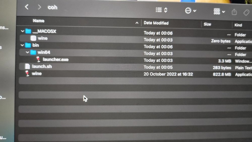 So I had a go yesterday but with the same results as before. I checked: logged in user was an admin, Applications folder had "Read and Write" for admin on the Get Info tab and I removed the coh folder and LaunchCat file from Applications folder. I re-ran the downloaded LaunchCat.app and similar to before, 828MB Wine file downloads and little else. The LaunchCat program in Applications opens briefly, then disappears.