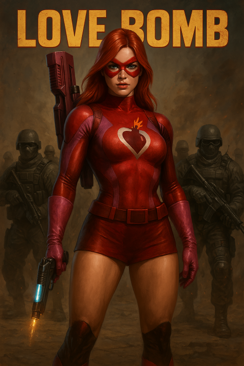 Usually AI feels like more of a surrender than satisfaction for me. Maybe it is because I used to commission—wish I still had money to do that—and its easier to get what you want. That said, even with kind of funky gun on her back and her just randomly firing into the ground, I kind of love how this came out. This was Chat-GPT. I shared the bio and a screen shot and it had kicked out a cool but cartoony version. I replied "Cool but could you do one a little more photoreal?" and it gave me this. I like it!