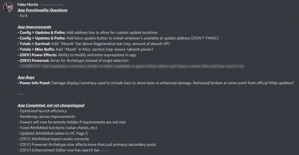 We're aware that the recent update of Mids Official is *borked* in a number of ways, so for now I'm putting a halt on reports (at least in the Discord server) until we can resolve the big problems. We do have another update planned, but we don't have an estimate quite yet outside of "tomorrow". I don't think any of us are sure how these bugs managed to slip by (given we've been internally testing many of these changes ourselves for quite a while), but we're doing what we can to clean up the mess. We were all pretty amped to get anything published, really, Metalios included, so I think we just kinda jumped the gun a bit. This one surprised us just as much as everyone else! Sorry everyone!- 293 replies