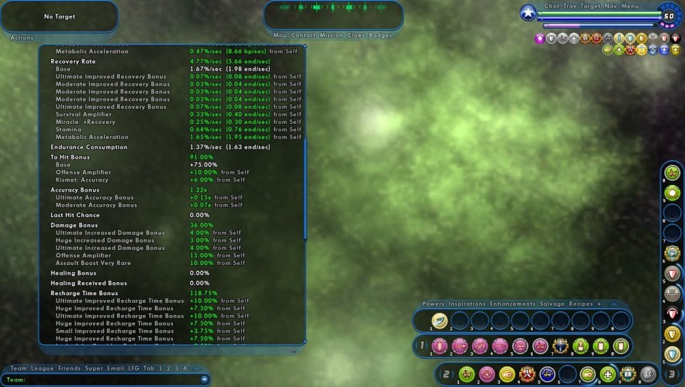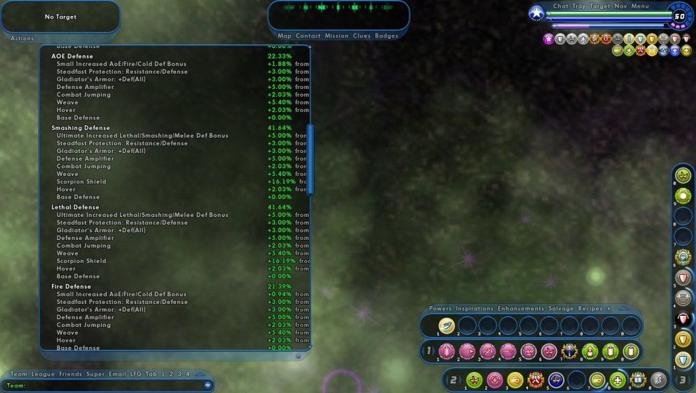 How are your defenses? Your recharge? I like alot of what you've done. I've been following the builds here for a TA/A proc build myself. I'd really like to take hover/fly and cap ranged defenses, building as much global recharge as possible, and pour on the procs everywhere else. It's hard deciding exactly how many attacks j need though.