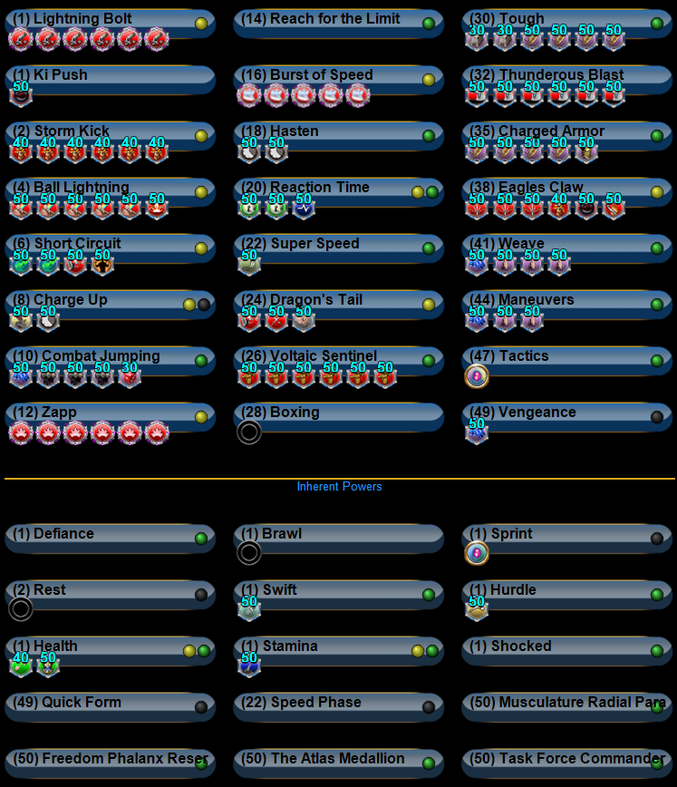 This thread might help Builds can evolve as a character grows and as a player gets a feel for what they need. Endurance is typically a pretty high initial priority. From there builds can almost lead you where you want to go. Slots can often get gobbled up on many characters leaving less actual choices. I often over build and then start to refine it cheaper and cheaper. (nothing wrong with a thrifty build that can survive and defeat enemies) Common single enhancements: Numina +Regen/+Recovery Miracle +Recovery Panacea +Health/+Endurance Preventive Medicine +Absorb Performance Shifter +End Gaussian - Chance for Buildup Luck of the Gambler +GlobalRecharge (we can use up to 5 of these) Unbreakable Guard +MaxHP Winter's Gift +SlowResistance Steadfast +Def Gladiator's Armor +Def Reactive Defenses +Res Shield Wall +Res Power Transfer +Healing Force Feedback +rech Blessing of the Zephyr +KB protection Kismet +ToHit Regenerating Tissue: Regeneration Impervious Skin: Regeneration Aegis: Psi Resistance Impervium Armor: Psi Resistance Sudden Acceleration KB>KD Celerity: Stealth -Res Debuffs Achilles Heel -Res Fury of the Gladiator -Res Annihilation -Res -