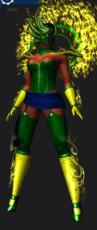 7. Anybody know what the hell the green effect is on this character? She's an archery/darkness blaster, with no powers colored green. This effect seemed to appear randomly on her while in a Crey mission, and lingered after exiting. It didn't appear at all in the next Crey mission, though the second mission didn't have the more heavily-armored Crey mobs that appeared in the first mission. There are also no icons under my character meters that would explain this, as far as I can tell.