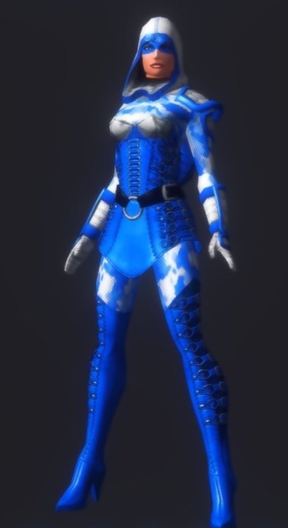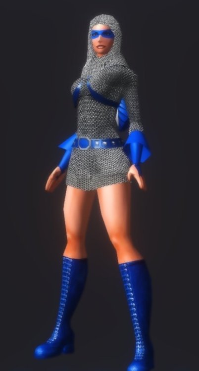 9. Here I go again: Level 50 #47, Rayusha Razor (Claws/Willpower brute). She's from Ukraine. When I originally rolled her on Live, her name was Raisa, which I think was Gorbachev's wife's name, and the only female name from that part of the world that started with "R" that I could think of off the top of my head. When I rerolled her on HC, it occurred to me that "Raisa" was more of a Russian name, and I wanted a Ukrainian name, so I did a bit of "research" and found "Rayusha". I had a costume all ready to go for when she hit 50, but I think I designed it in 2019 when I originally rolled the character on HC, and didn't like it any more. So I made a new one.