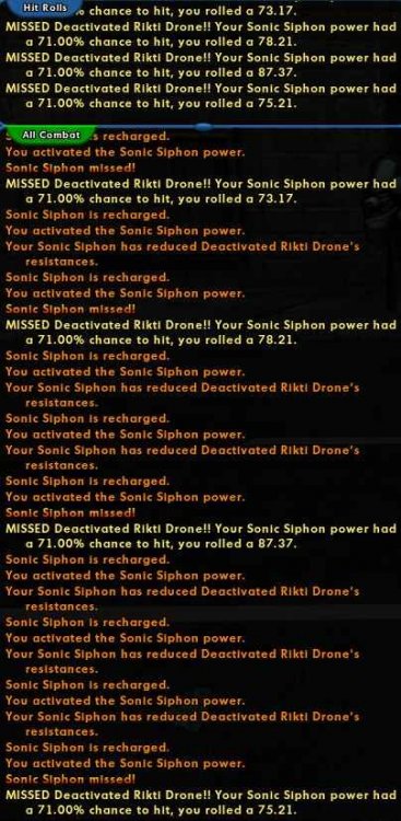Expected result: Sonic Siphon logs a Hit Rolls message whether it hits or misses. Actual result: Sonic Siphon logs a Hit Rolls message only when it misses. No Hit Rolls message when it hits.