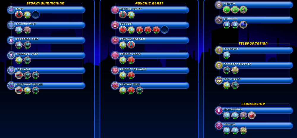 So I've been on a bit of a defender kick lately, and found that I really enjoy the combo Storm/Psi. The trick is I am not super sure where to take it as I approach 40 and eventually endgame. I am definitely planning on doing a full respec at 50 (who doesn't >.>) to try and optimize but wanted to ask for some guidance/thoughts from folks as to best options. Playstyle so far has felt very controller-like, which feels a little weird for defender but has been a blast. Lots of knockdown/up (I've been slotting knockback > knockdown for this), disorients, and other "soft" controls. I also like that I can throw out so decent team buffs from leadership and mists, no where near a bubbler or anything, but its still nice. I am currently leaning towards picking up dark epic for the various PBAoEs in it (and the armor) to go with the various ones in the normal sets, but I am open to thoughts on this account. Anyway, any suggestions or just general approaches would be awesome. Also, double tornadoes, while probably ridiculously impractical, is amazingly satisfying. Thanks! Edit: Current build added below