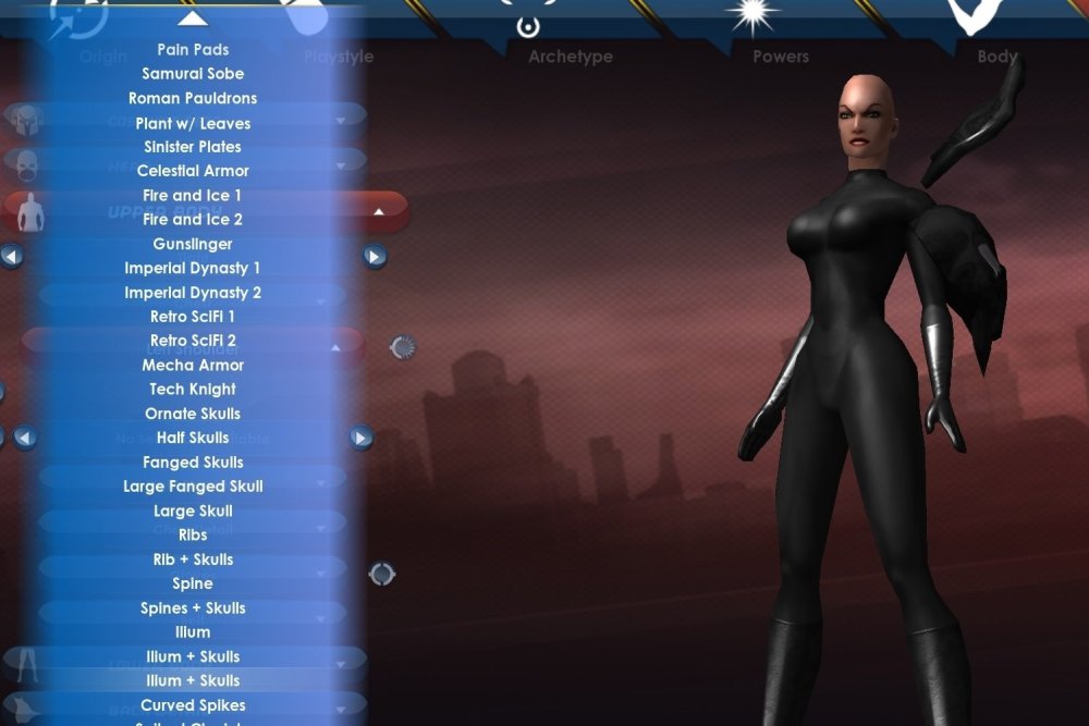 The asymmetrical left shoulder part "Ilium + Skull" on the female body type shows up twice on some top types. The first entry is the female version, but the second entry is scaled for the huge body type. 2/18 Edit: This huge shoulder piece is specifically the "Metallic Glow" variation, which is otherwise missing as a selectable option from the normal-sized version. This issue only applies to to these top types: Tight Tops With Skin Sleeveless Robes Sleeveless Jackets Unique Tops Sybil Tight Sybil With Skin
