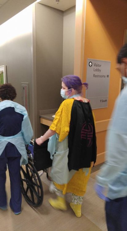 Thank you, @Frazier, @Da1syDiesel and @Luminara (and also the rest of you who commented or read this thread or participated in RoseVortex's Sisterhood memorial). This is 24 hours after @RoseVortex's 2nd transplant in 2016. Walking the halls of the hospital after her 1st transplant in 2008, rocking the Arachnos Cape sent by the Paragon Devs (specifically WarWitch, but a bunch of them signed a poster and art book). This is her main Transplant #1 Hospital PT outfit in 2008, with the same Arachnos cape. Also the hero she created 'Hospital Marauder' - BS/WP scrapper from that outfit. 2015 and 2013. She started doing the purple hair (and it became her signature with all the folks we encountered) because she liked how it looked on her Hospital Marauder toon. I haven't tried to even launch the game in about a year, because she was so frustrated trying to play with her hand-tremors and coordination impacts from all the medications. I felt like I shouldn't be playing if she couldn't. The City was our place to Go Out And Do Some Stuff before her first transplant in 2008. She was excited to see the rebirth, and Annoyed With Death Ray Laser Eyes that her body wouldn't let her enjoy playing the game again. Go be heroes and villains and all in-between. You might see me around again on Excelsior. Kalkin
