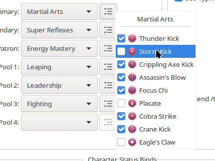 Secondly, I've released a very early (but working) test of a new "power selector" feature on the General tab. You can now pick which powers from each powerset / pool your Profile has, and that'll inform things like PowerBinder's selection of powers etc. This is optional, and if you leave it untouched, everything should act the same as it always has. I'm not in love with the UI yet, so any input on improvements to that is especially welcome, but as always, let me know what y'all think!