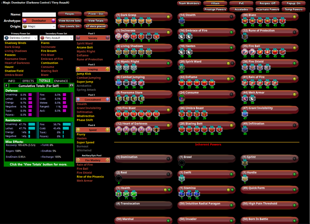 Here's a "firepower" focused magic themed Dark/Fire/Fire build: Dominator (Darkness Control - Fiery Assault).mbd