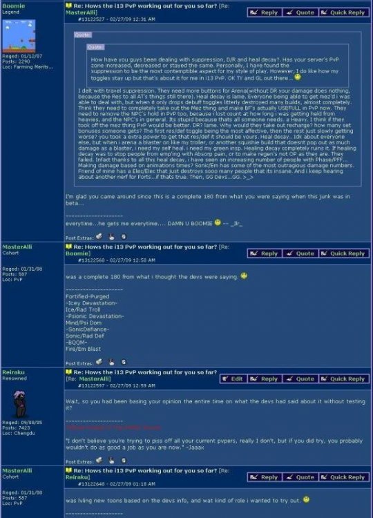 Outside of Hurricane, there wasn't a power changed with PvP in mind as the primary reason. Even after they changed Hurricane, Castle still thought it was too good but left it alone. This is evident as after i13, when PvP was given its own set of rules for how powers were balanced, the devs didn't go back and rebalance powers in PvE. It's because the balance was done for PvE to begin with. PvP has been, and would always be, an afterthought to the devs.