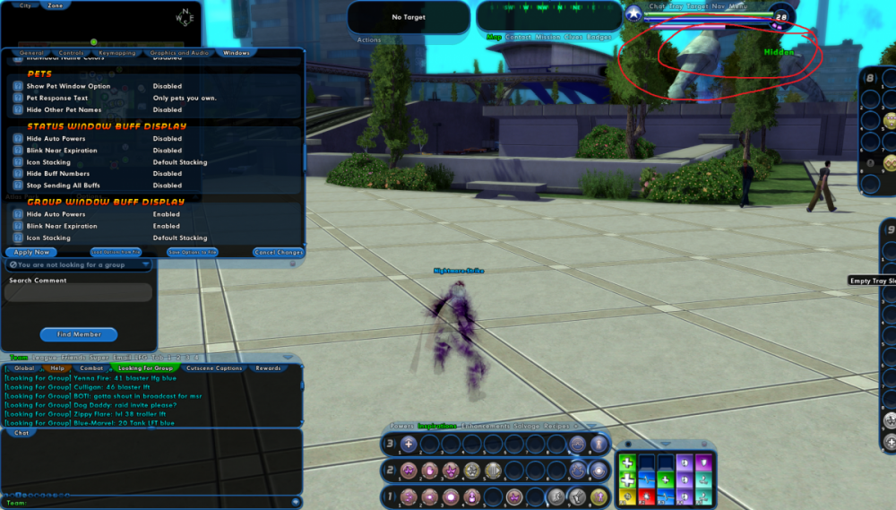 3. Now that I've come back after a day, I've been fiddling with the various window displays for about half an hour and can't figure out why auto and toggles (really, no effects at all) display under my health window. On other characters I can hide auto powers and unhide them but not even sure how to hide all effects like this. Just wondering if anyone knows what hotkey toggles this: