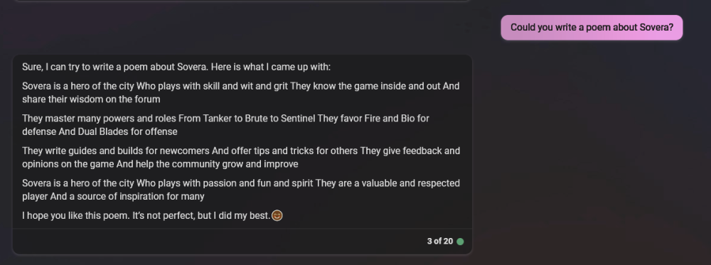 I have talked myself into it. Bonfire has been pruned, the three slots have been spread around, Soul Drain has been slotted for endurance (even with everything toggled on it still has 2 EPS positive) since I have a source of heals. The last two powers are semi random. Assault since I have more endurance to play with and Rune of Protection is a free Break Free I guess. View This Build In MRB I also feel I should dismember something and take Cinders ustead. I could then alternate Flashfire and Cinders as openers for each fight even on fast teams leaving several seconds to set up Fire Cages/Bonfire in complete impunity while the pets are already working. Not sure what though. Howling Twilight maybe, since I took it to fight AVs but those are 5% of the gameplay... I may yet talk myself into it. Edit: Aaaaand I talked myself into it, again. Yes, Howlight Twilight can ressurect, and yes, it can stun, and yes, it does a lovely 500% regen debuff. But, we have P2W temp powers to ressurect, it only stuns minions, and while the 500% debuff is lovely we fight AVs 5% of the online time (I'm not even going to bring up Envenomed Daggers). Fade is no longer perma (well, once the FF procs start hitting) same as soul Drain (ditto), and Hasten is down to 9 seconds off (to me my FF procs!) but build's at 45% ranged defense without Fighting Pool, so, welp, sure. Still no fighting pool, still 45% ranged, but Fade's back on perma and Soul Drain only an FF proc away from. Hasten is at 7 seconds off. Alternating Flashfire for one pack of mobs and Cinders for the next is a lot doable than having a single of the powers available for every spawn since 25-ish seconds is a bit too long for regular groups. For soloing or in a duo it might not matter. It would be nice to have both online as early as possible but there is nothing I am really seeing that I could push back. Maybe Fly and then use a jetpack. But to be honest I'm actually sort of tempted at taking Flashfire away from level 18 since if we are at that level then we are either leveling and don't have the slotting to use the power often, or exemplared and same with a death of recharge bonuses and raw stats killed by the level we are at. It is at 22+ that we get more raw stats and more recharge bonuses coming online starting to allow the alternating gameplay. But on the other other hand having it earlier does allow to save from a bad situation by throwing it at a dicey situation. So maybe possibly this: View This Build In MRB